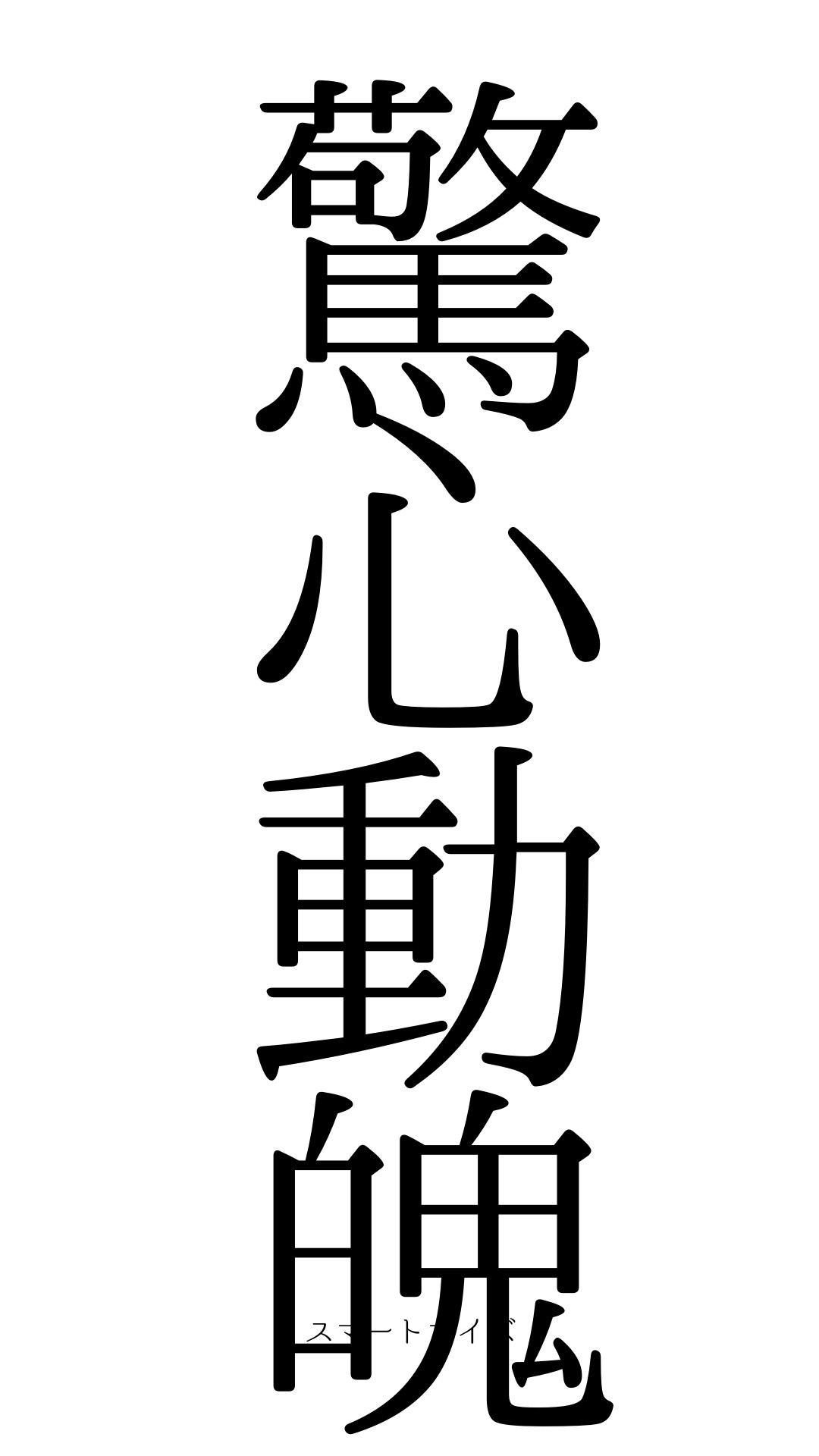 - 語源… 「驚」は驚く、「心」は心、「動」は動く、「魄」は魂を指し、「心と魂が揺さぶられるほどの衝撃」を表す。