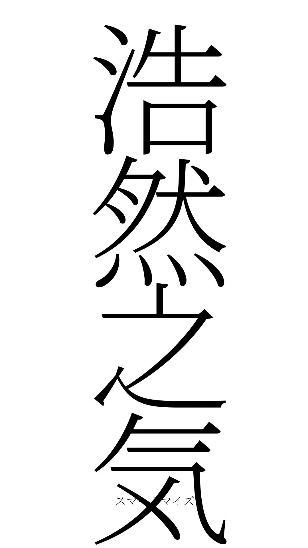 物事にとらわれない、おおらかな心持ち。天地にみなぎっている、万物の生命力や活力の源となる気。天地に恥じることのない道義にかなった行動をすることで、心に自然と生まれてくる強い精神のこと。孟子の語。
