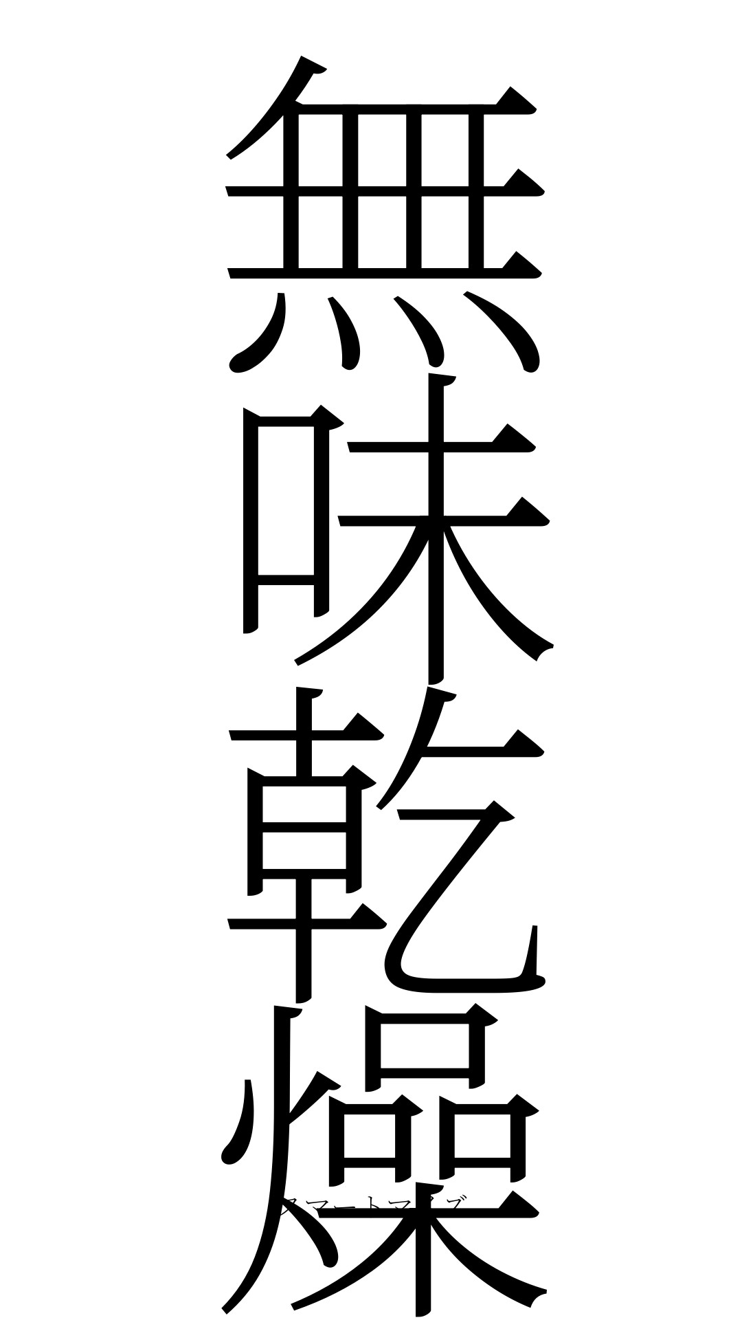 - 言葉の由来… 「無味」は味がないこと、「乾燥」は生気がないことを意味する。