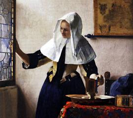 フェルメール :窓辺で水差しを持つ女(1662~65年)-無料壁紙