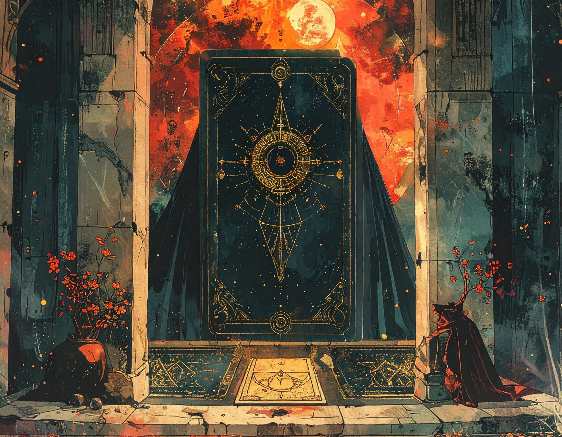 神秘的に配置されたタロットカードの象徴的な絵柄01-無料壁紙