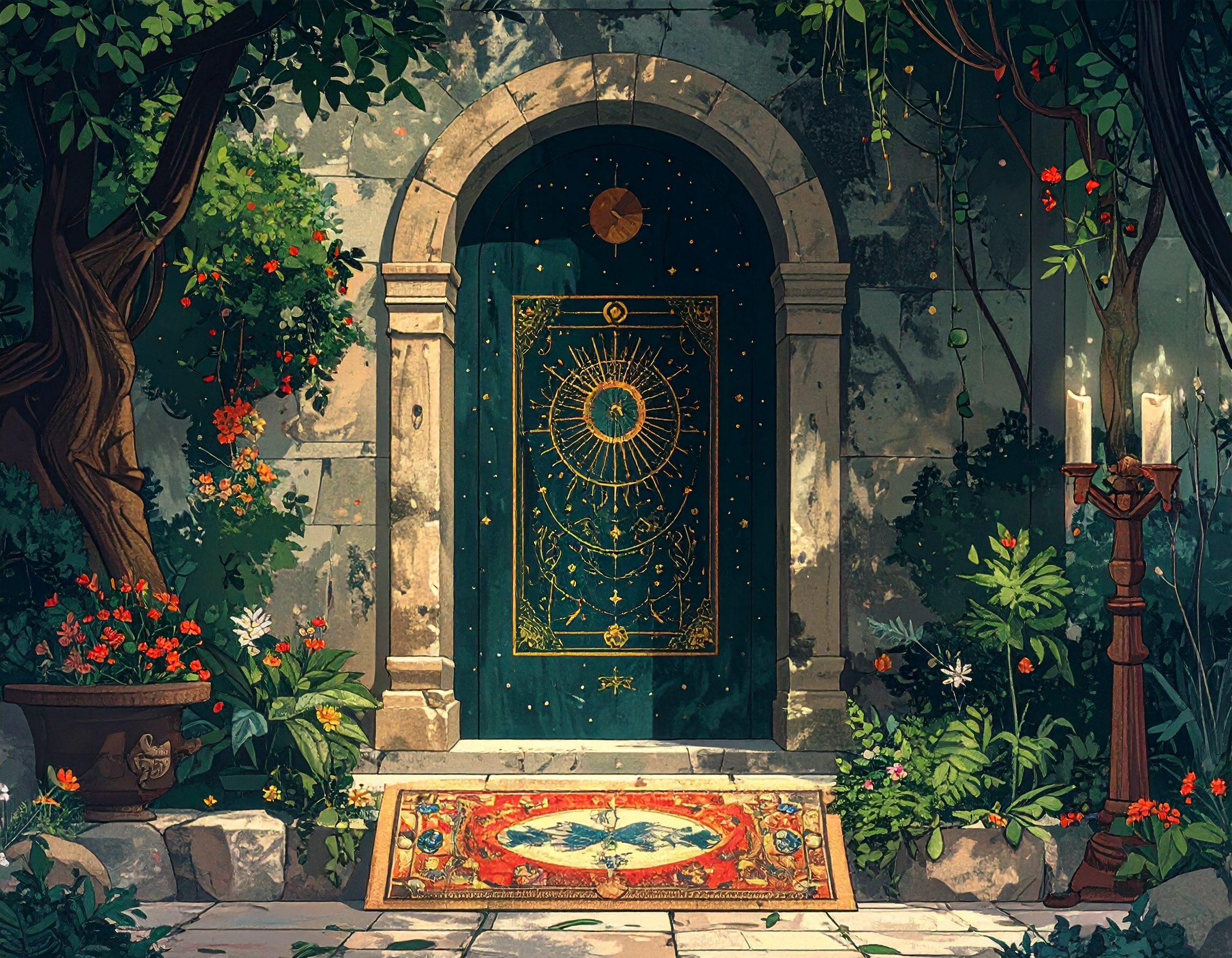 神秘的に配置されたタロットカードの象徴的な絵柄02-無料壁紙