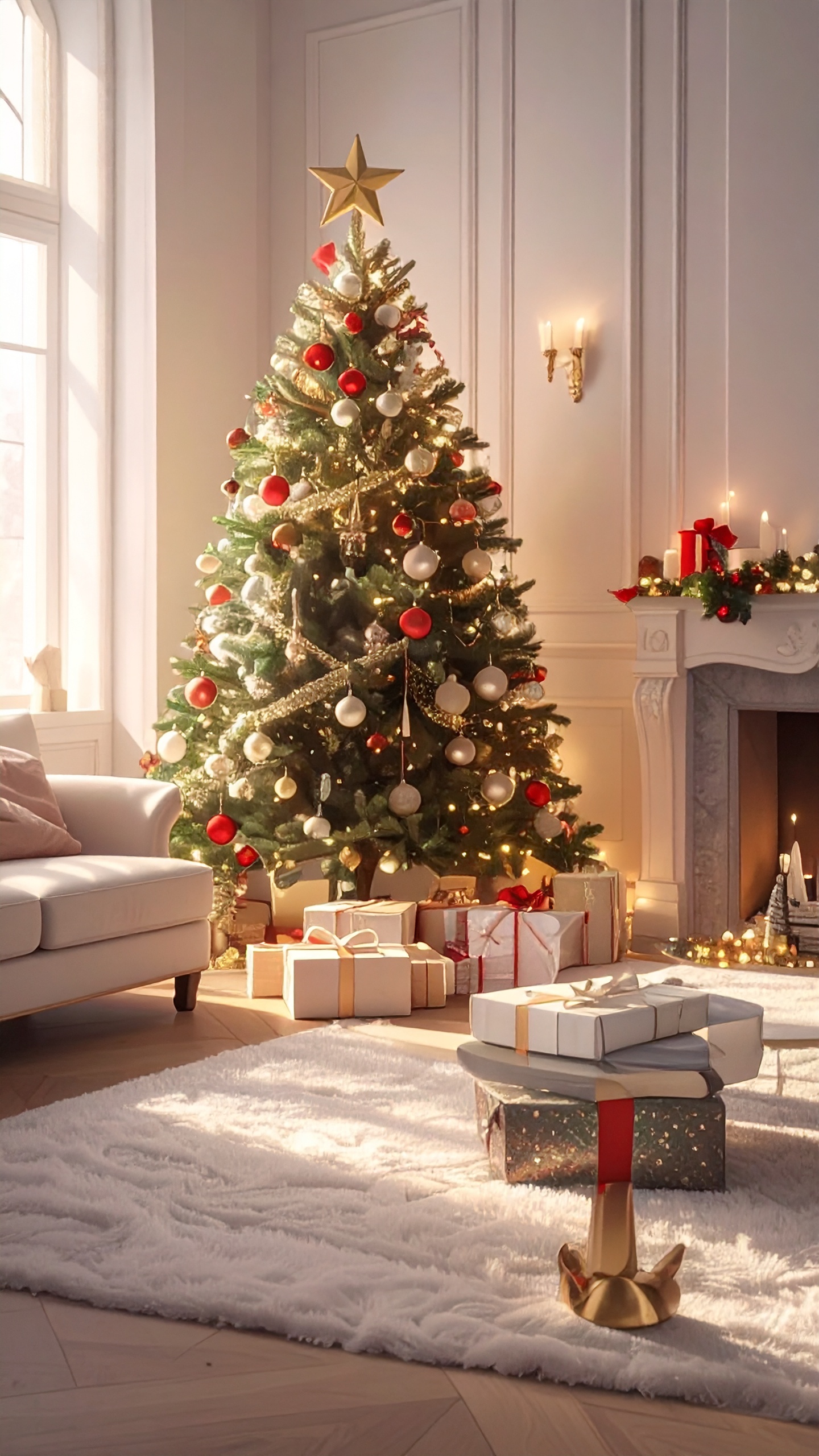 部屋の中のクリスマスツリー02スマホ壁紙