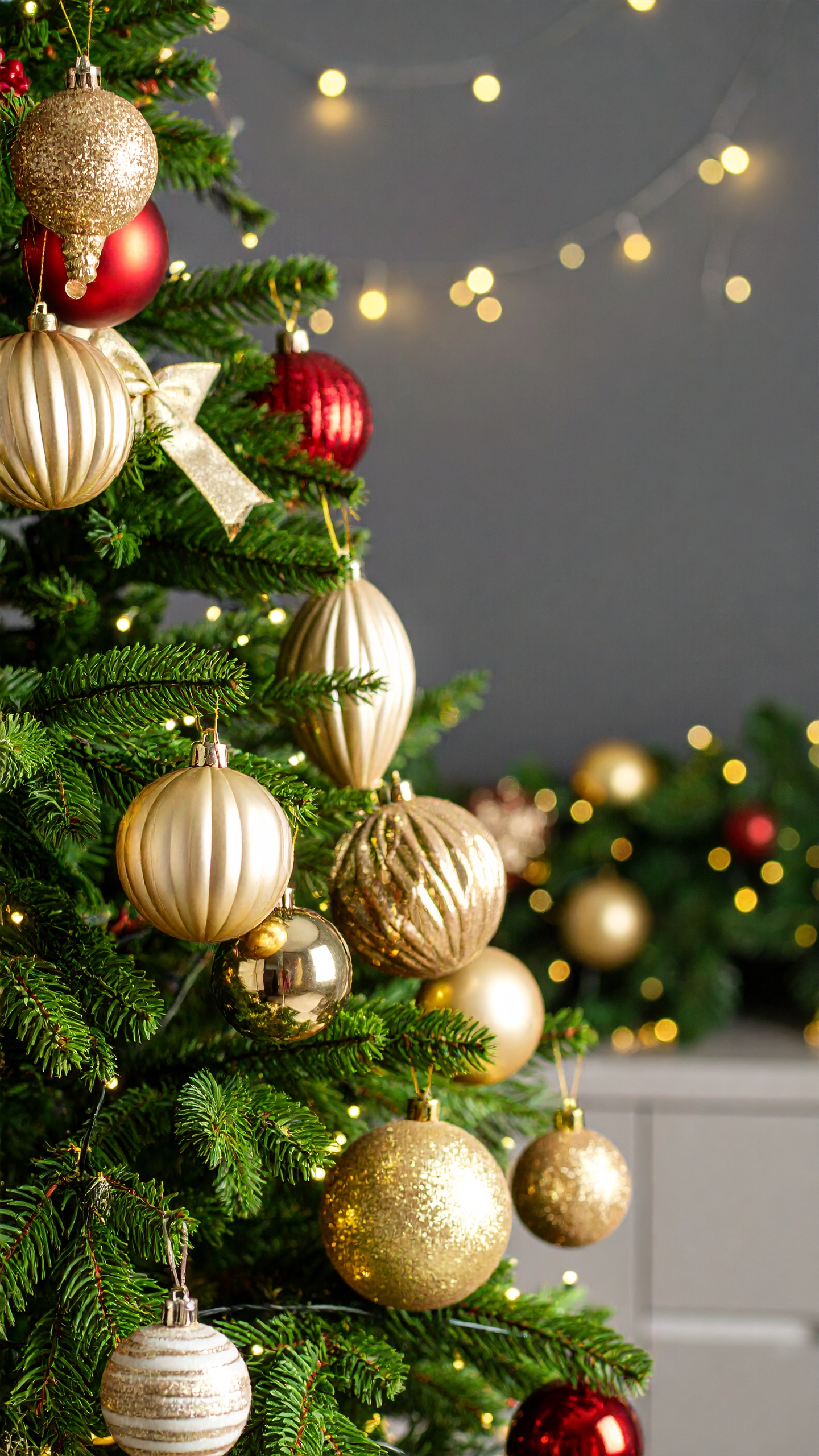 冬のリボンとイルミネーションスマホ壁紙