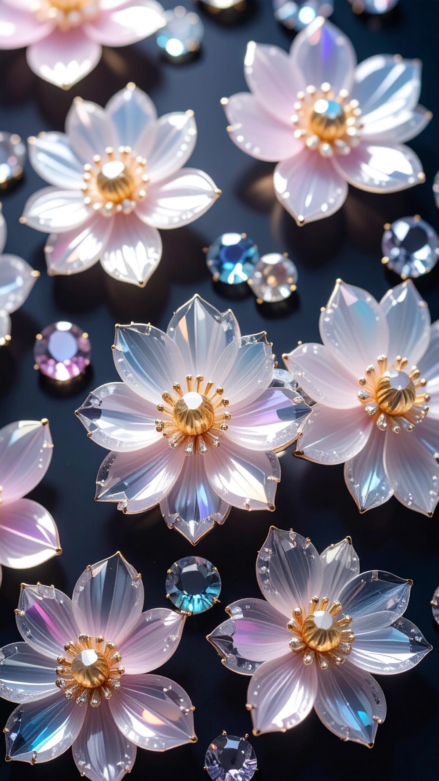 光を纏う水晶の花スマホ壁紙