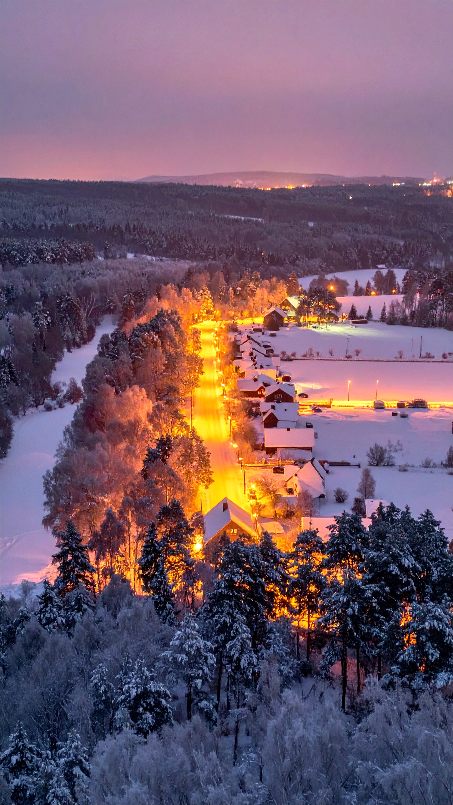 白銀の森とあたたかな灯火スマホ壁紙