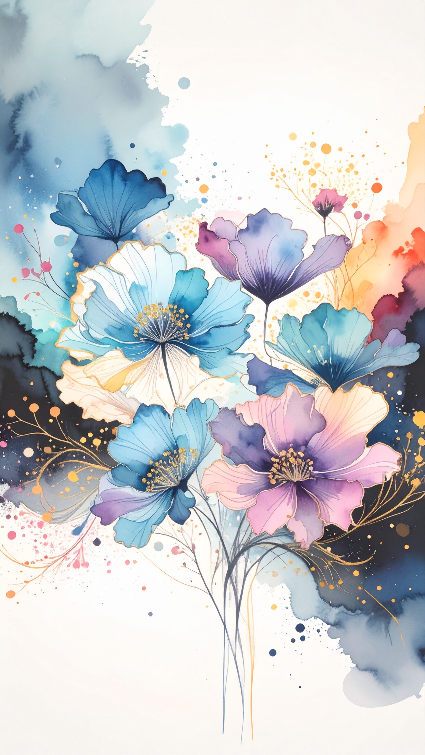 水彩で描く線の花園スマホ壁紙