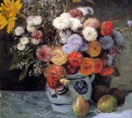オーギュスト・ルノワール:陶器の花瓶と花-無料壁紙